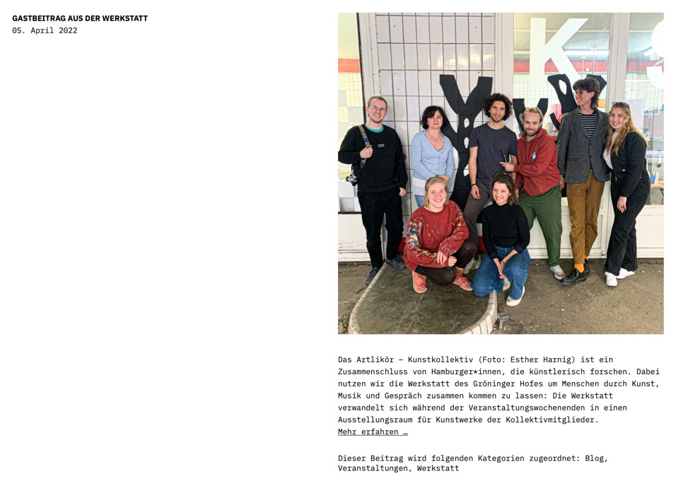 Blogeintrag vom 05.04.2022 auf der Website des Gröninger Hofes