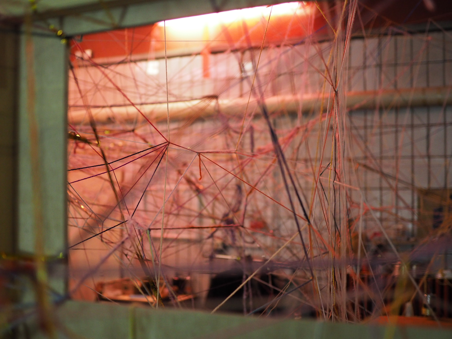Im Spannen von Fäden, Schnüren und Bändern interagieren wir: Wie vernetzen wir vorhandene Raum-elementen, Mitwirkende , uns – oder nicht? Aus dem Material entstehen aus einzelnen Elementen Linien und Gewebe – denken wir. Wie fühlt es sich an, diesen Raum zu vernetzen? Neue Barrieren, neue Wege, neue Bewegungen tun sich auf. Im Miteinander gestalten wir unsere Umwelt neu.